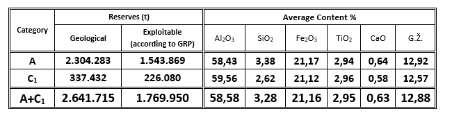 Al2O3 =58.69%; SiO2 =3.74%; Fe2O3 =20.84%; TiO2 =2.94%; CaO=0.68% and G.Ž.=12.76%.